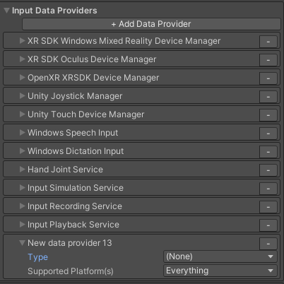 詳細項目が選択出来るようになったので「InputDataProviders」を開き、「+Add Data Provider」を押下する。