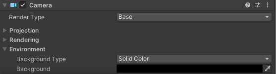 Sceneに配置したCameraを開き、以下の設定を行います。