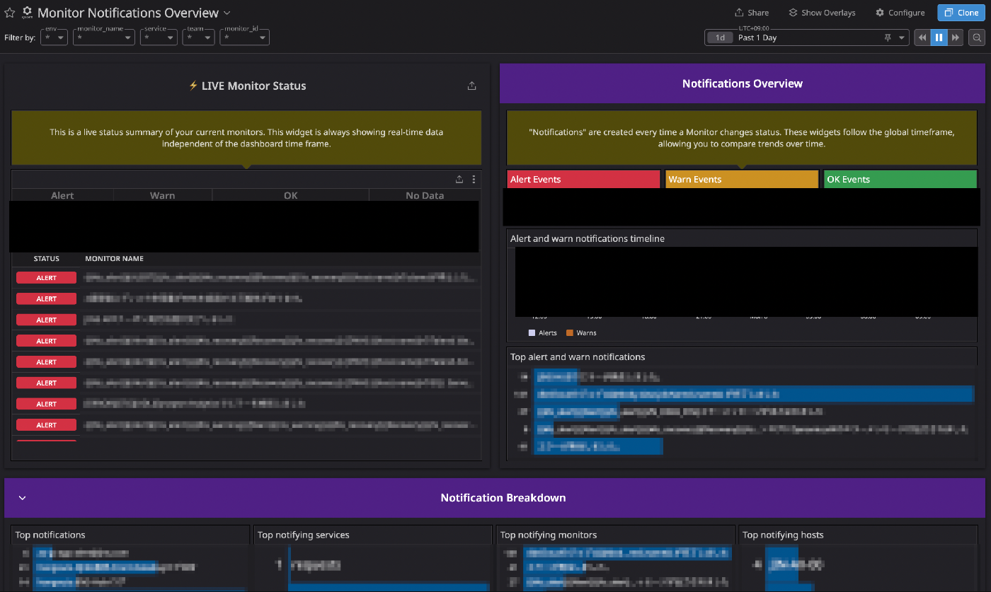 エクスポートしたcsvベースで分析している途中で存在に気づき、以後はこれをベースに特定を進めているのですが、DatadogではプリセットでMonitor Notifications Overviewというダッシュボードが用意されています。