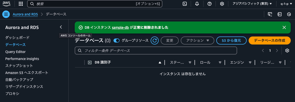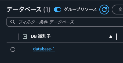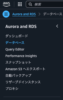 - Aurora and RDSのメニューから、「データベース」をクリックします