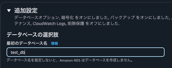 - 追加設定から任意のデータベース名を指定します