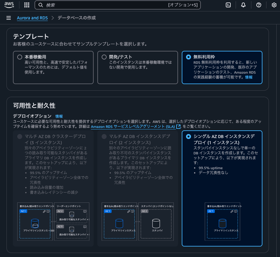 AWS上にRDSを作成します