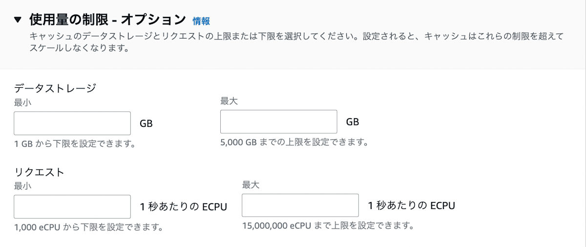 - DataStoregeとECPUPerSecondについてはUser Guide上明記していないが、マネージメントコンソール上に値の範囲の記載あり