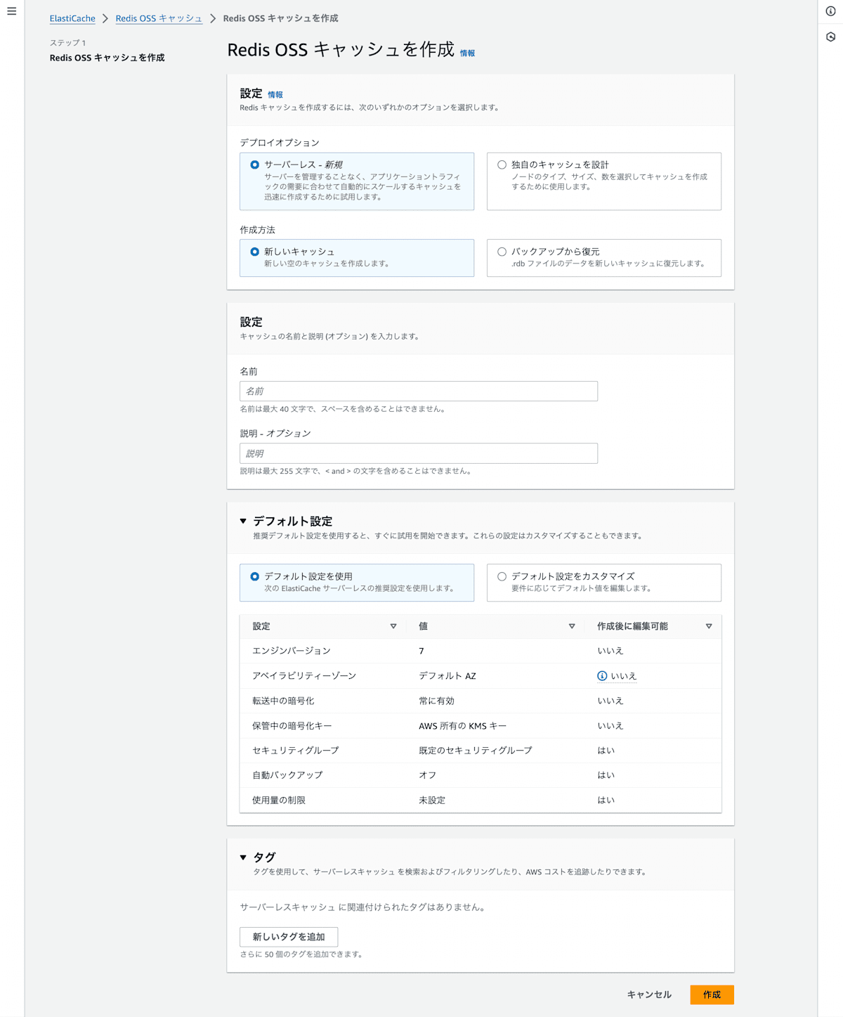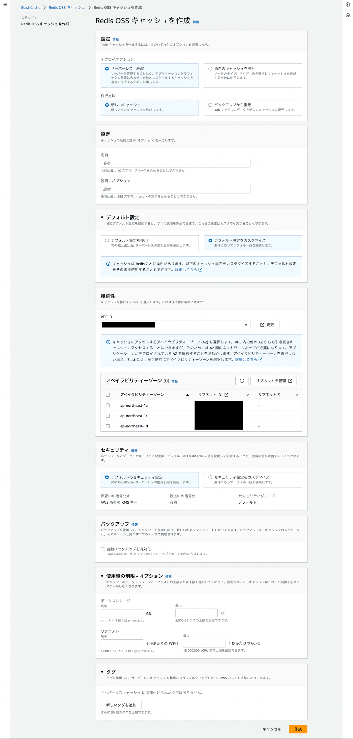 サーバーレスキャッシュの使用制限。 | No | CacheUsageLimits |