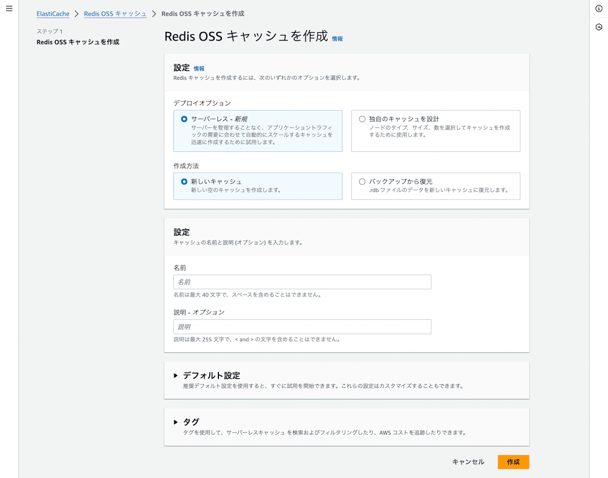 - 作成は東京リージョンだと少し高いので