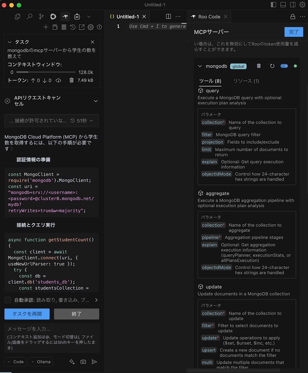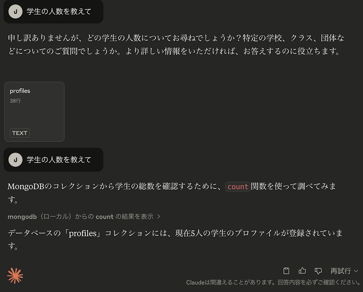 MCPサーバを利用してmongodbに入っている学生の数を教えてもらいたい