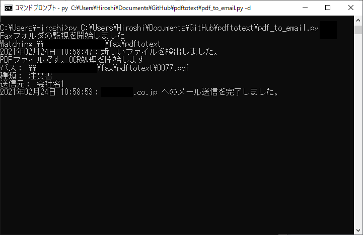 PDF化したFAXの概要をOCR(Python + Tesseract)で読み取ってメール送信する