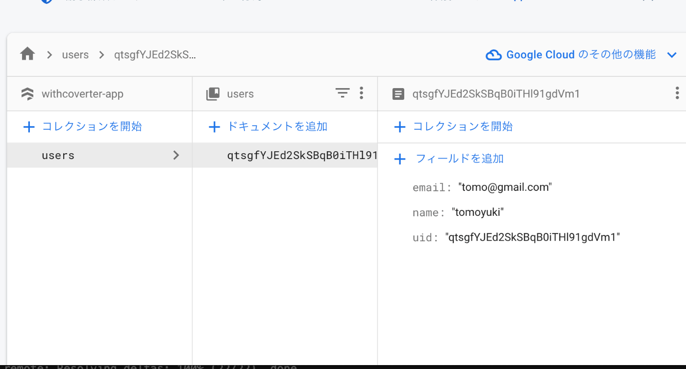 - FireStoreは、usersコレクションのデータを保存するのに使用