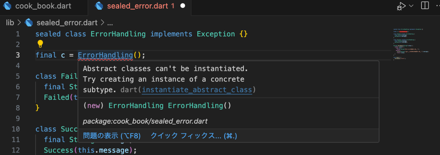 ちなみに、sealed classは、抽象クラスと同じなのでインスタンス化はできない。