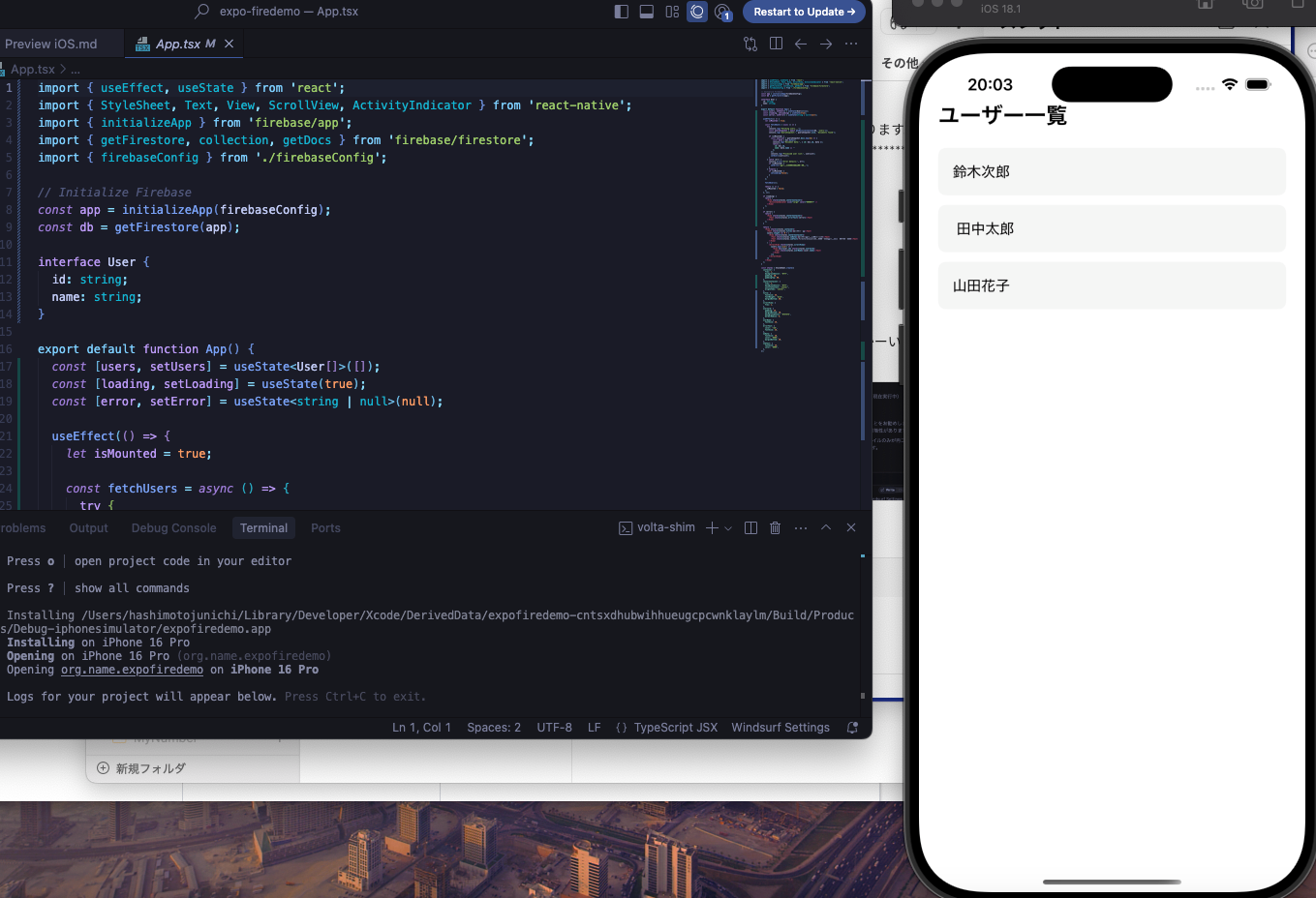 ExpoでFirestoreの値を表示する(iOS)