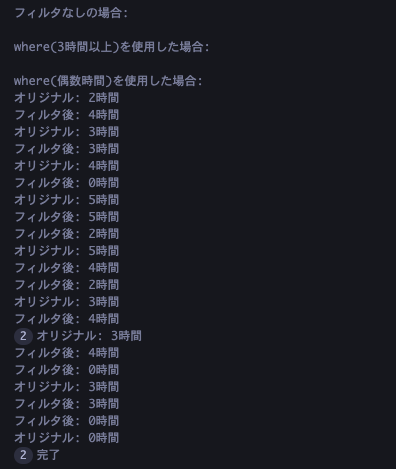 where()メソッドは、Streamの要素をフィルタリングする機能を提供します。指定した条件に一致する要素のみを通過させ、条件に一致しない要素は除外します。