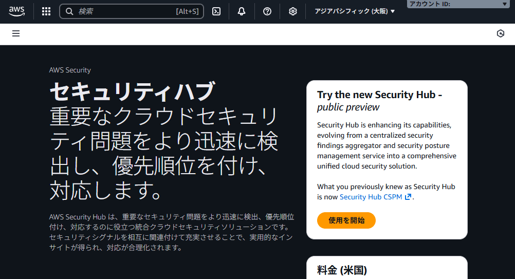 また、OU直下のメンバーアカウントのAWS Security Hubは大阪リージョンのみ有効化しています。