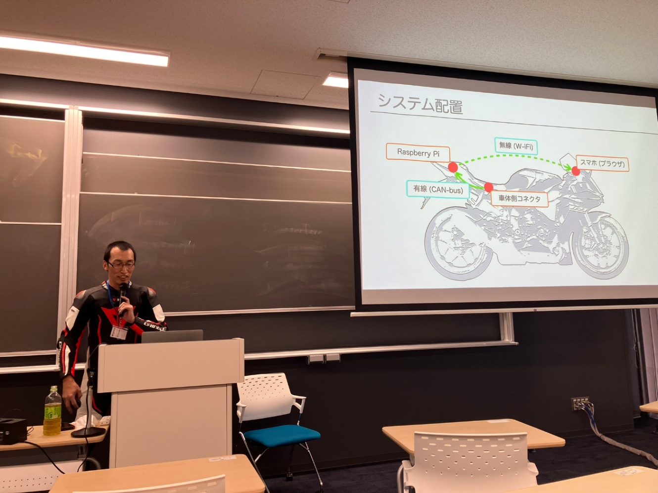なぜRaspberry Piかというと、車やバイクの制御情報を監視する為、ケーブルからController Area Network(CAN)プロトコルのデータをキャプチャして画面に表示したい、という欲求があった(中西氏はバイク乗り)為とのこと。この人もまた変態です。