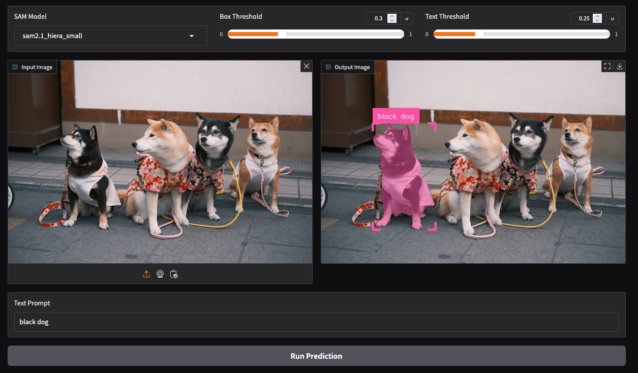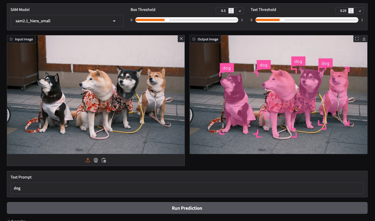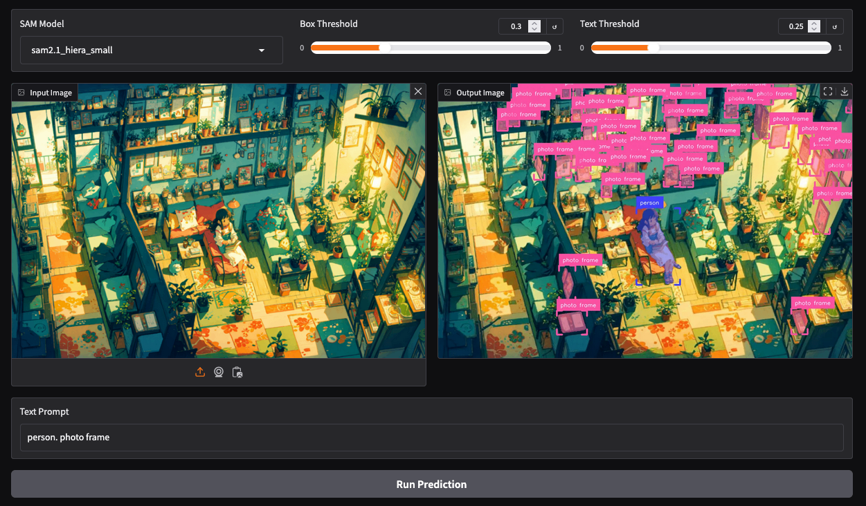 META社が開発したセグメンテーション「Segment-Anything」と、物体検出の「GroundingDINO」を融合したツールです。