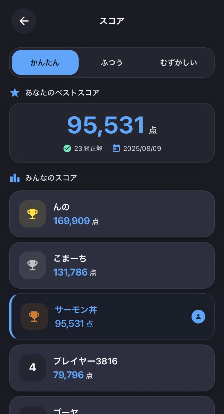 ここにはユーザのスコアランキングTOP10が表示されています。TOP10までしか表示されていないという点が重要です。