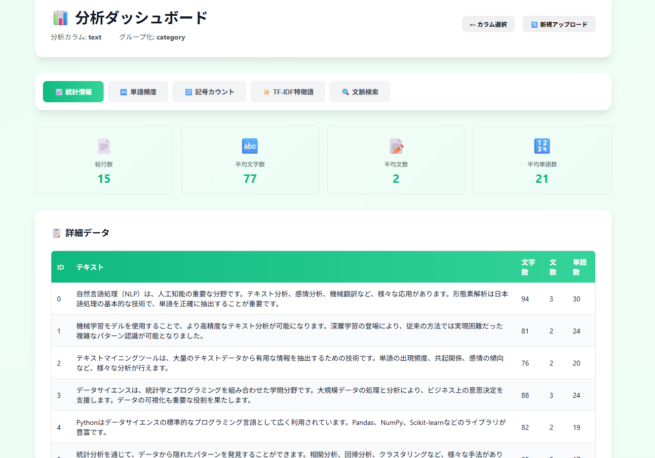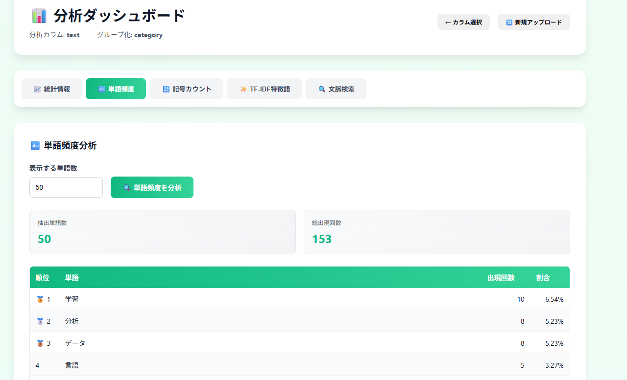 ダッシュボードからデータを眺めたりテキストの分析結果を利用できます。