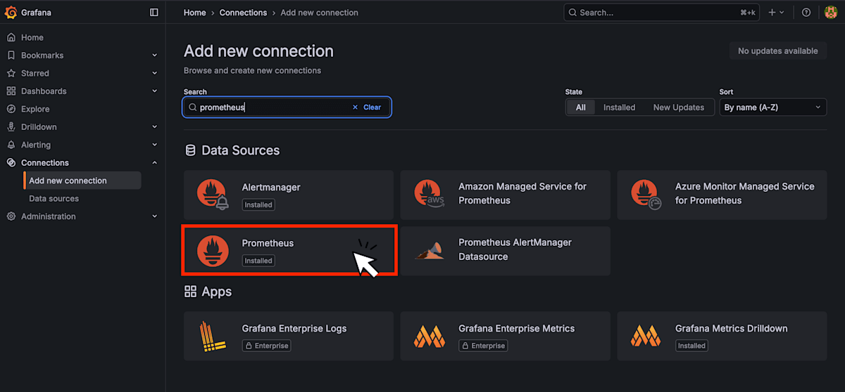 Prometheusを選択して Connection