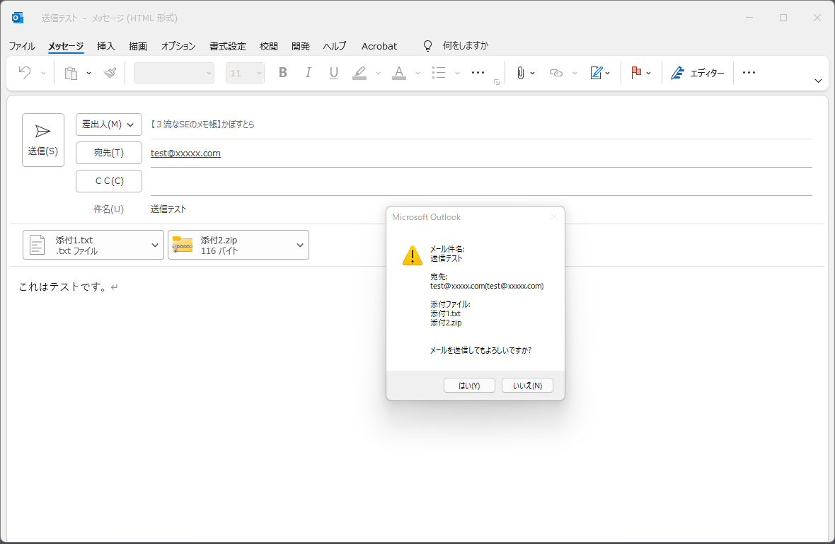 Outlook でお金かけず誤送信防止を実装したかったので、簡単にマクロで組んでみた。