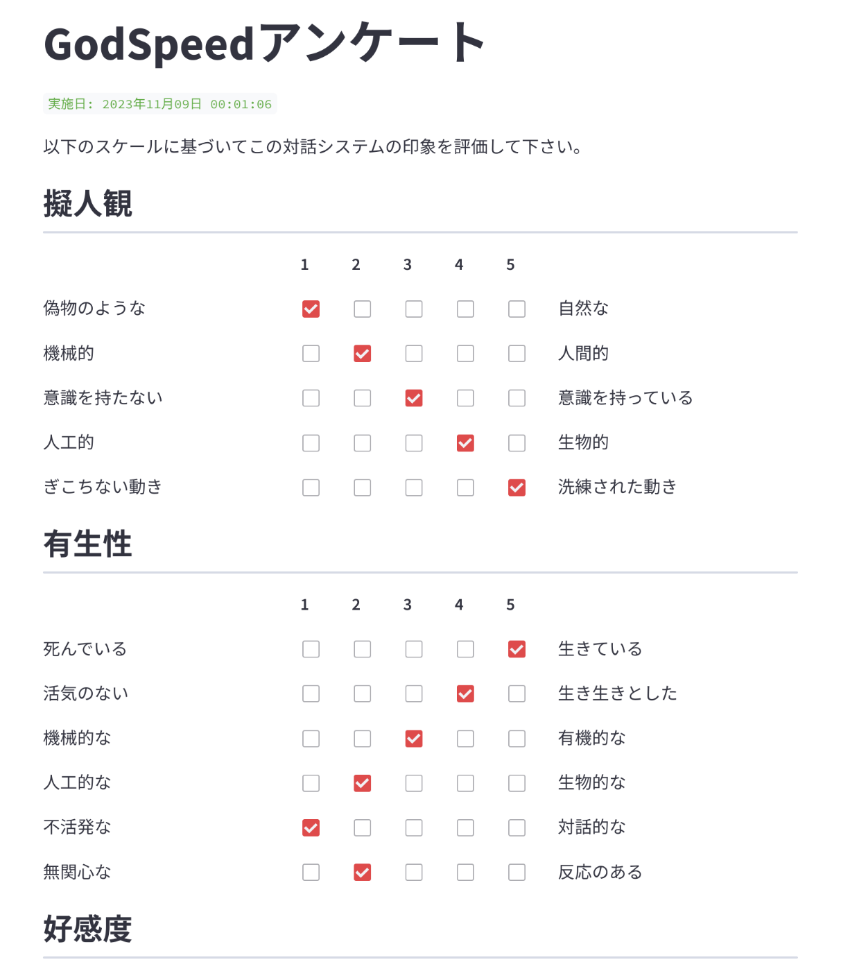 - 翻訳はGodspeedアンケートの原著者であるBartneck氏の和訳から引用しています。