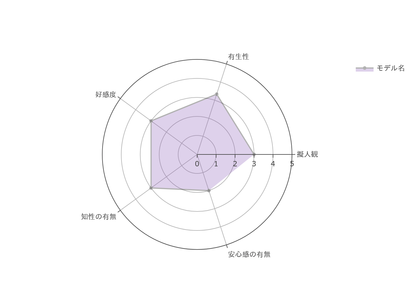 - 人間のロボットに対する代表的な5つの構成概念を軸にしたレーダーチャートがブラウザに表示されます。