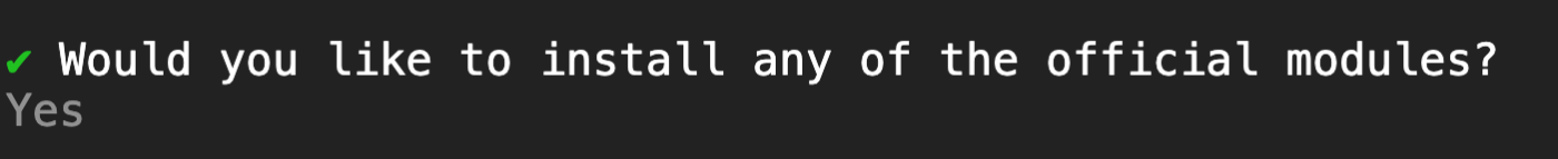 ※ Would you like to install any of the official modules? の部分は Yes にしました。