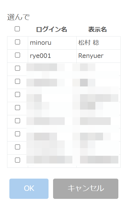 カスタマインに、「ユーザーをリストから選択するダイアログを表示する」という「やること」があります。今回このダイアログに全ユーザーを出す必要があったので、それを実現した方法を覚えとして書きます。