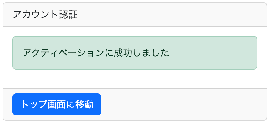 記載されているURLにアクセスすると認証完了の画面が表示される.