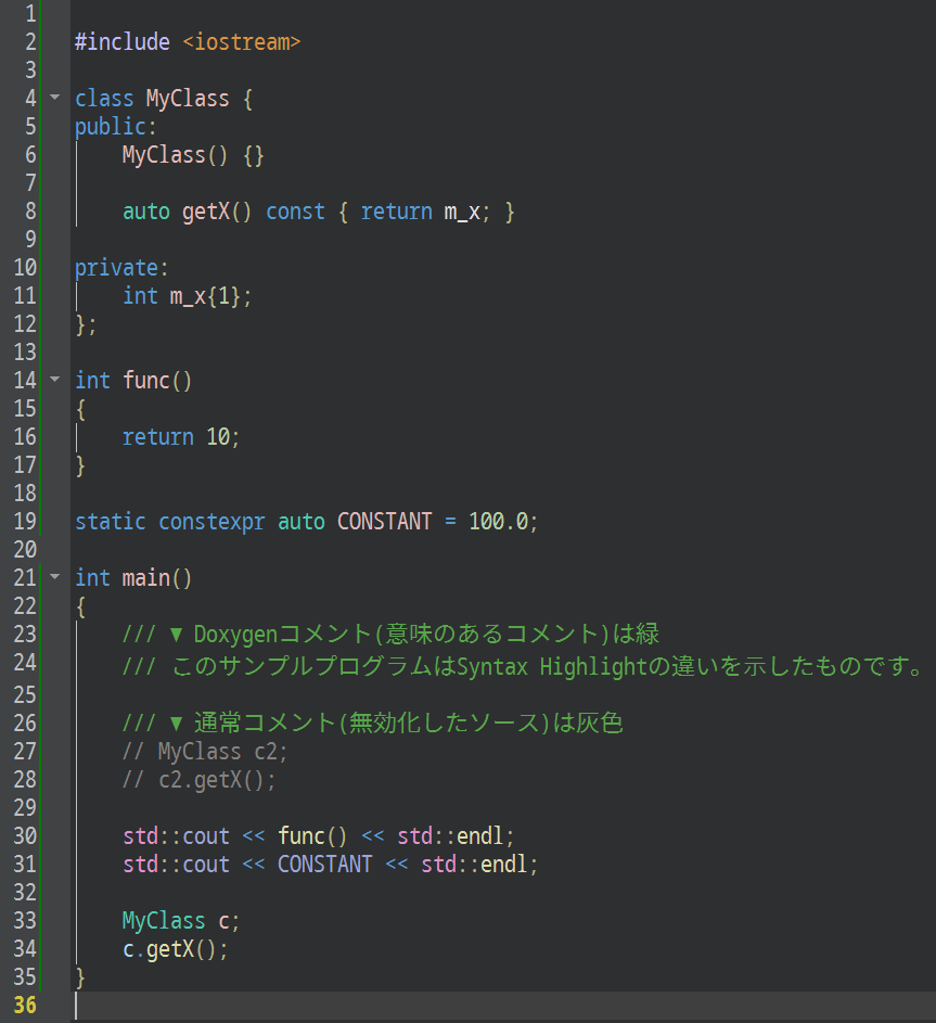 - デフォルトでは薄いグレーのコメントを、目立つ緑色に変更する。