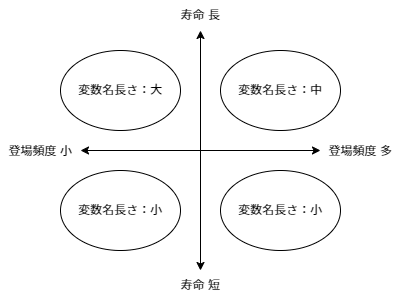 変数のスコープはできるだけ短く保つのが基本です。また、変数名の長さはその寿命や登場頻度に比例させると良いでしょう。