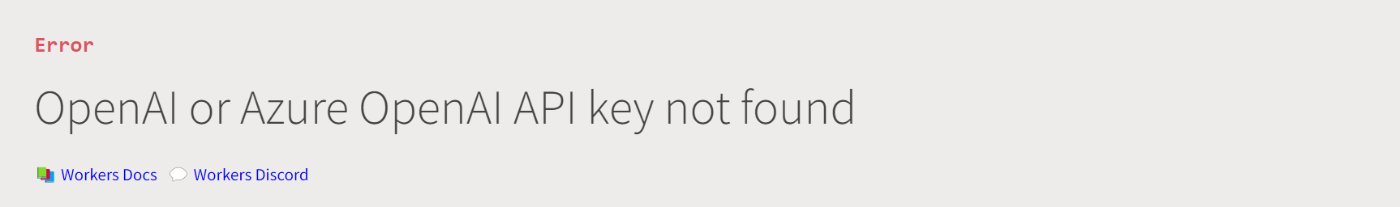 これは、先ほどOpenAIのAPI KeyをWorkersの環境変数に書き込みましたがローカル環境からアクセスできないためです。