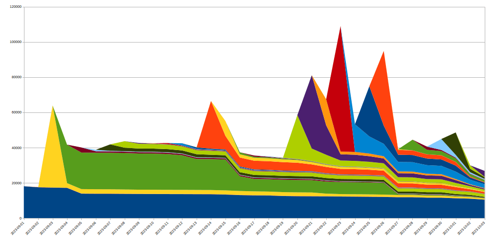 2023年8月25日から、多くのお客様を襲った異常に大規模なHTTP攻撃に気付き始めました。これらの攻撃は当社の自動DDoSシステムによって検知され、軽減されました。しかし、これらの攻撃が記録的な規模に達するまでそれほど時間はかかりませんでした。これは、過去最大の攻撃の約3倍の規模でした。