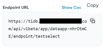 デフォルトでは作成されるAPIはTiDB Serverles Clusterが実行しているクラウド環境のドメインで動作します。(私の検証環境だとeu-central-1.data.tidbcloud.com)