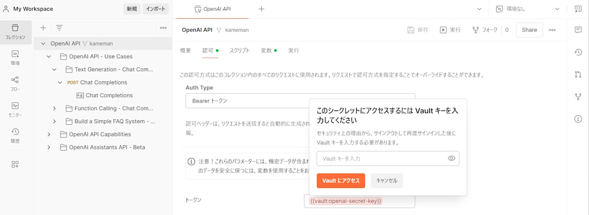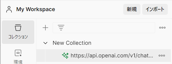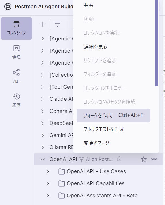 では、コレクションのOpenAIをフォークして自分のワークスペースに移します。