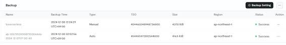 ここで取得されたBackupは残念ながらServereless Clusterには復元できないので別の手法を使う必要があります。