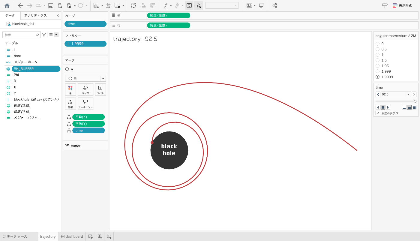 [Tableau]ブラックホール周りの点粒子の軌道を描画する