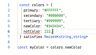 // valueには「#付きの文字列」しか認めない(as const の位置はsatisfiesの前じゃなきゃだめ。)