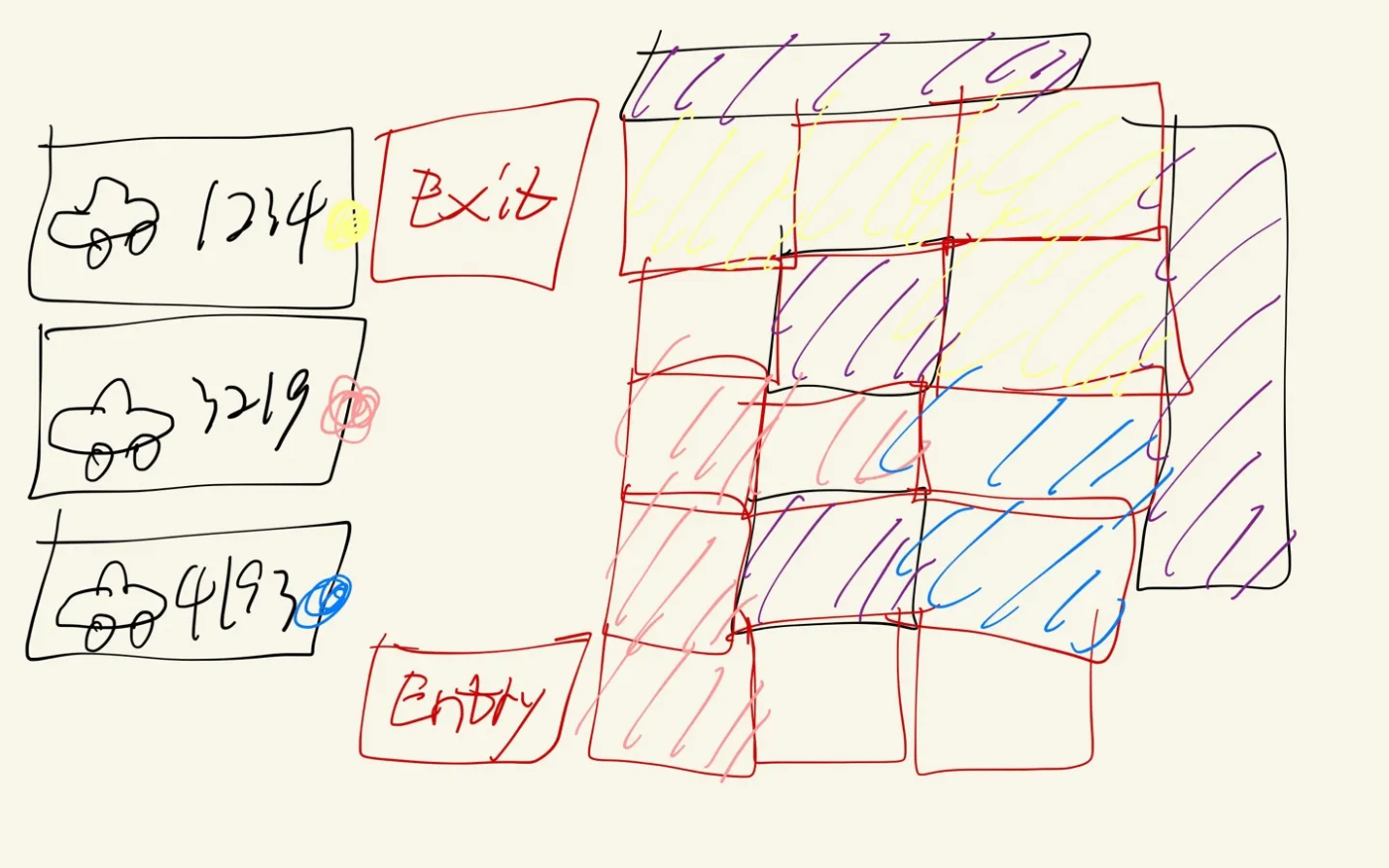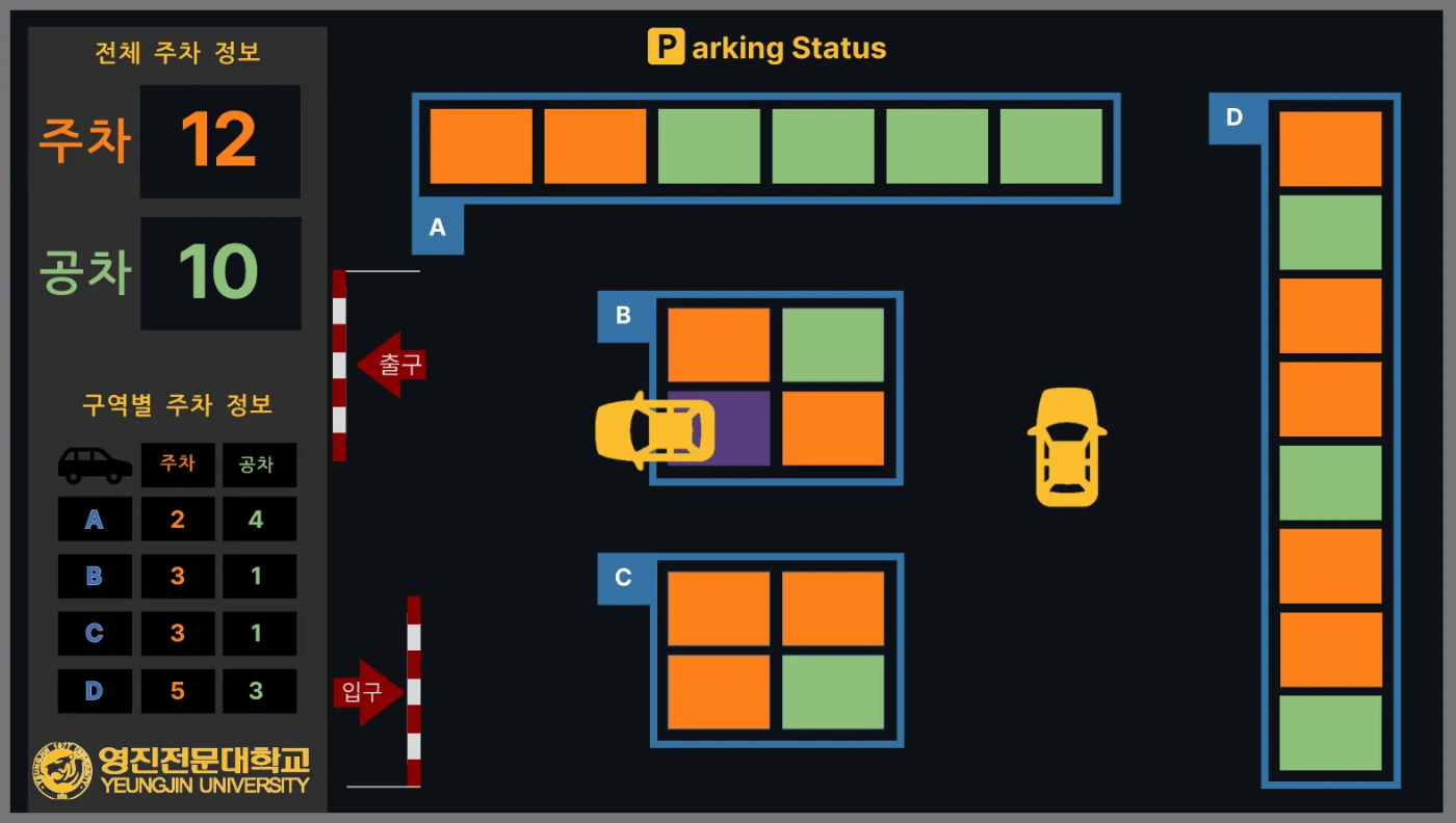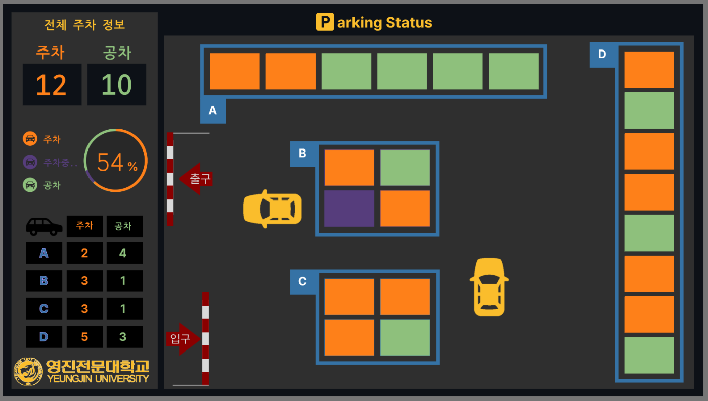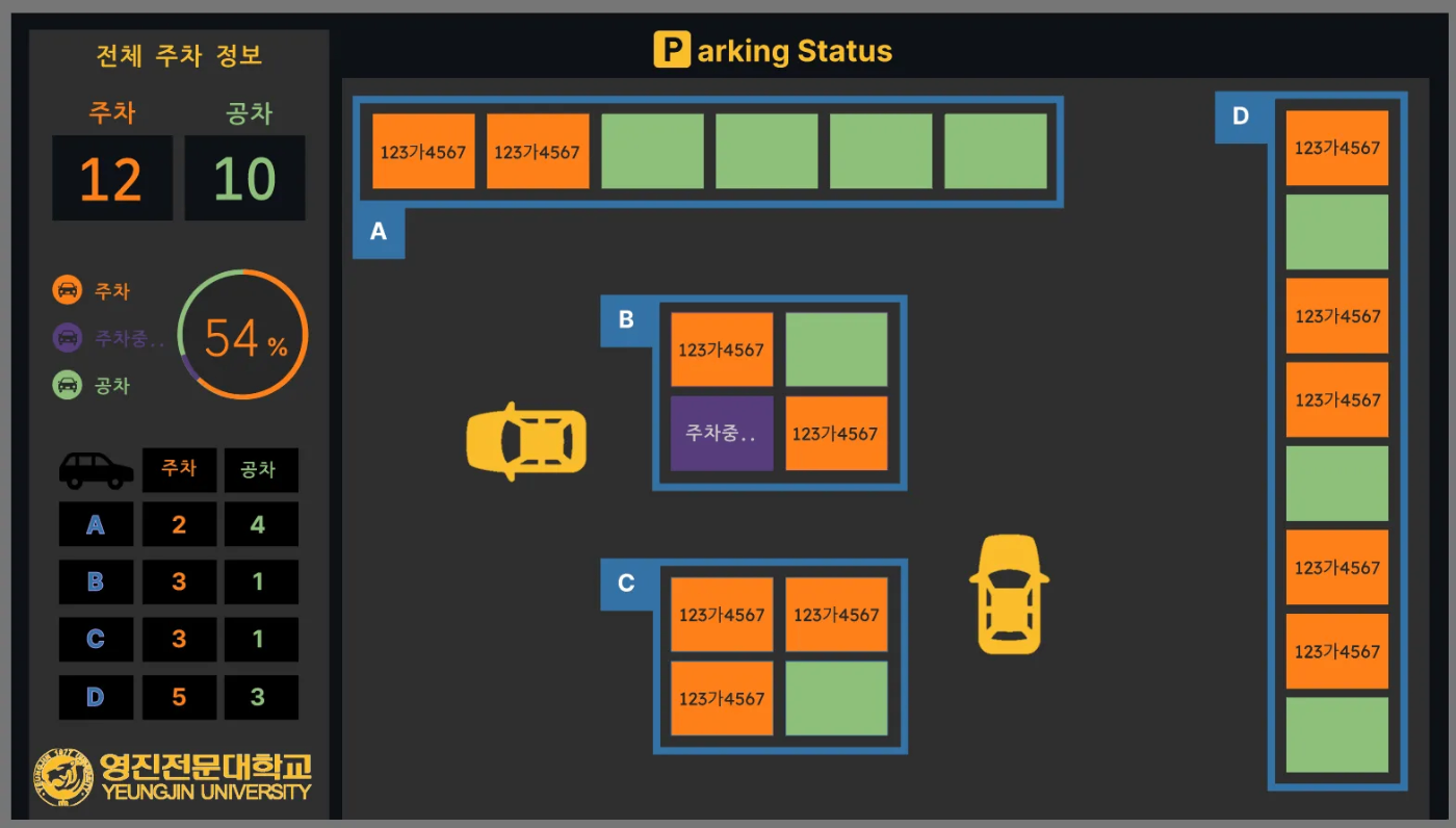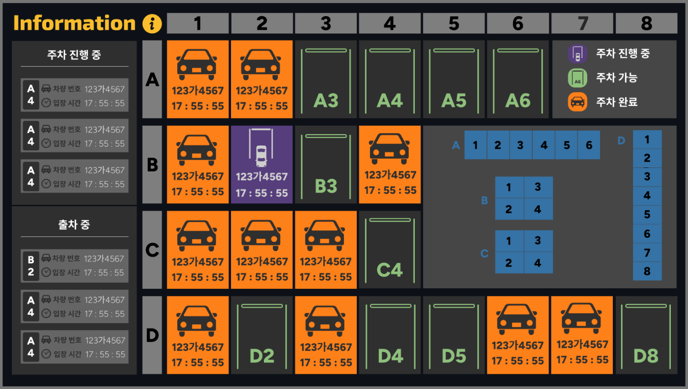주차 상황을 실시간으로 보여주는 모니터 화면 디자인이었습니다.