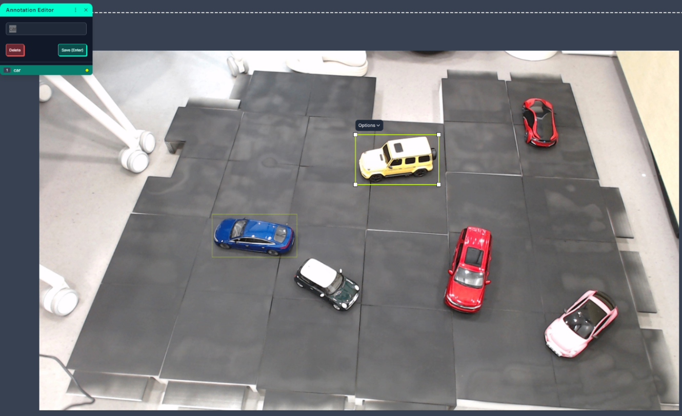 모형 주차장의 장면에서 미니카 객체를 정확히 라벨링하여