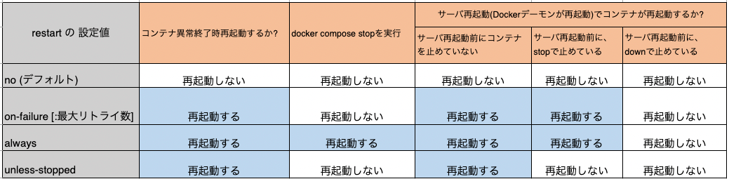 I had a vague understanding that the --restart setting, defined in a Docker Compose file or specified via docker run, simply determined whether a container would automatically start, and I felt somewhat unclear about the specifics.