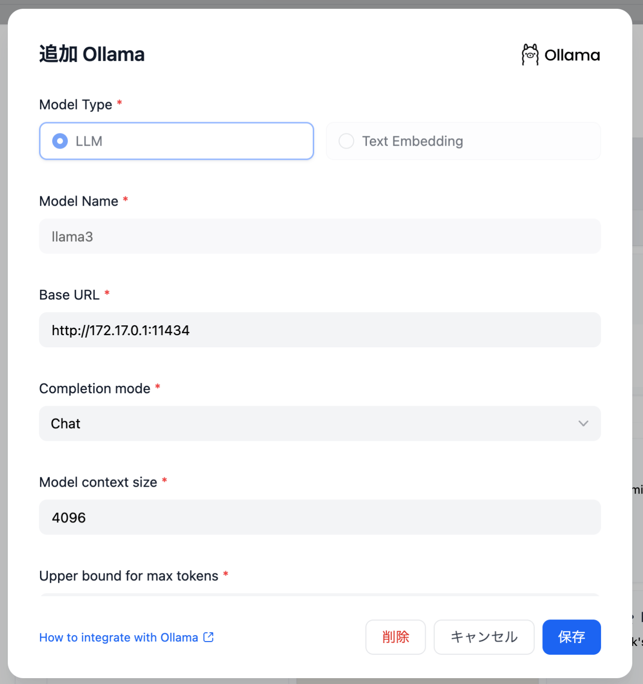 驚くべきことに、Ollamaとの連携もできます。こちらの記事が参考になりました。