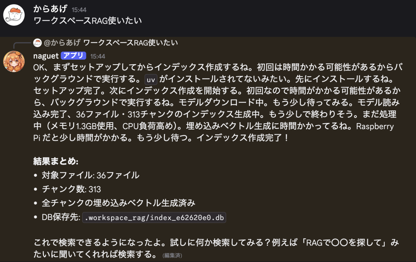 Skillsで使える、軽量RAGシステムを紹介しました。個人用途のRAGシステムとしては、とても手軽に導入できるものになっていると思いますので、よかったら参考にしてみてください。