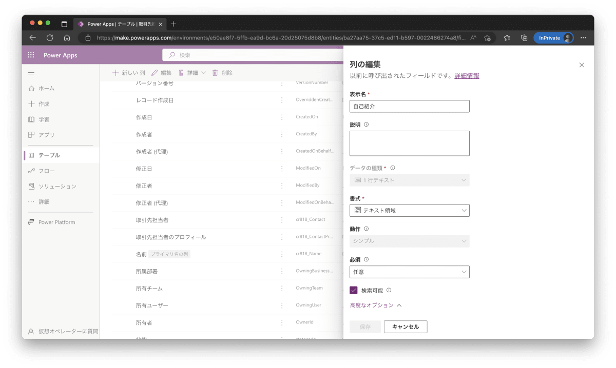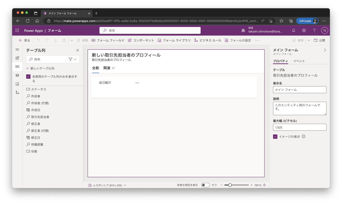 取引先担当者の子テーブルとなる 取引先担当者プロフィール を作成します。