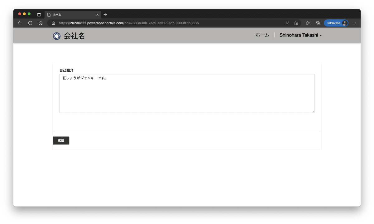 ログイン ユーザー (取引先担当者) に 1 対 1 で紐づく取引先担当者プロフィールという自己紹介列を含むテーブルを作成します。ログイン ユーザーが自己紹介を記入できるように、動的に挿入フォームと編集フォームを切り替える方法を説明します。
