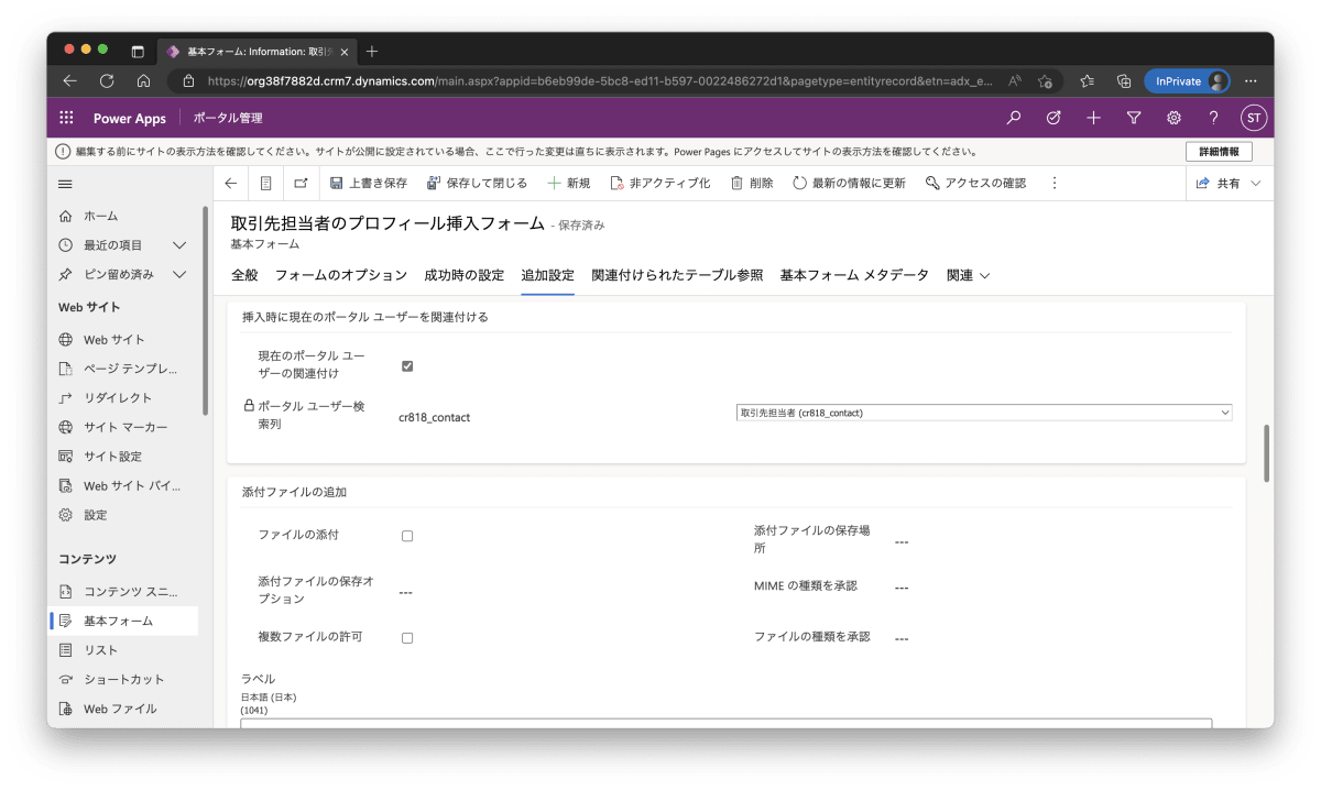 この状態で保存し再度表示すると id={{contact-profile-id}} にリダイレクトされ編集ができるようになります。