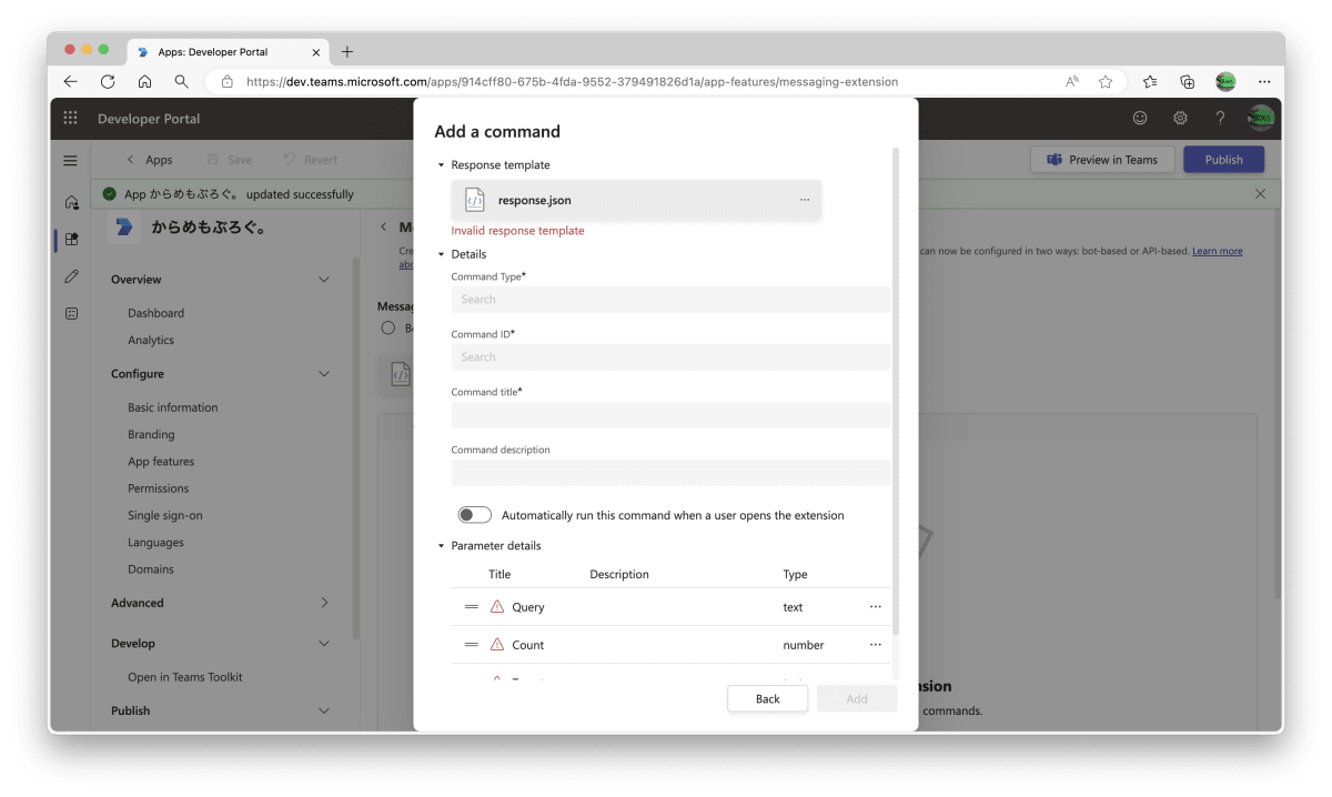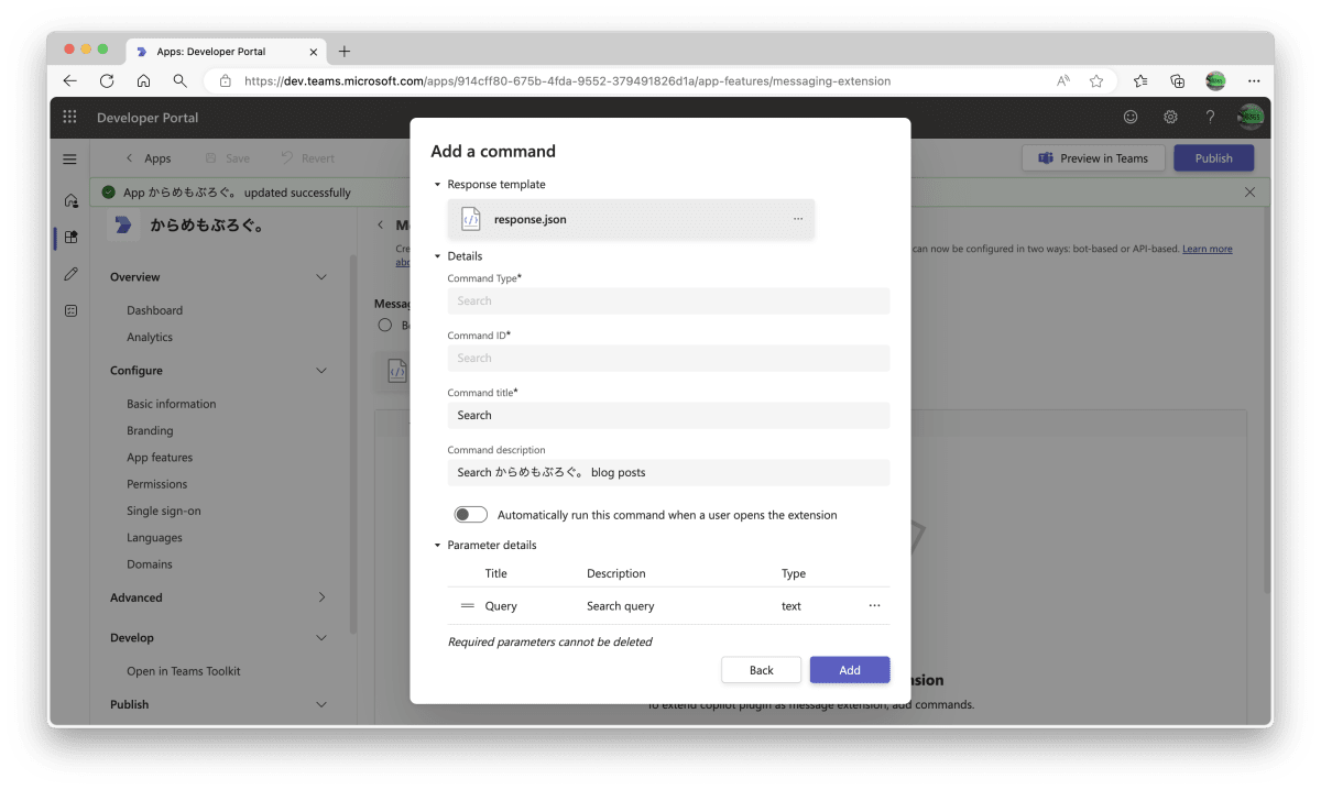 2024/04/15 に API ベースの Teams メッセージ拡張機能を作成できるようになりました。