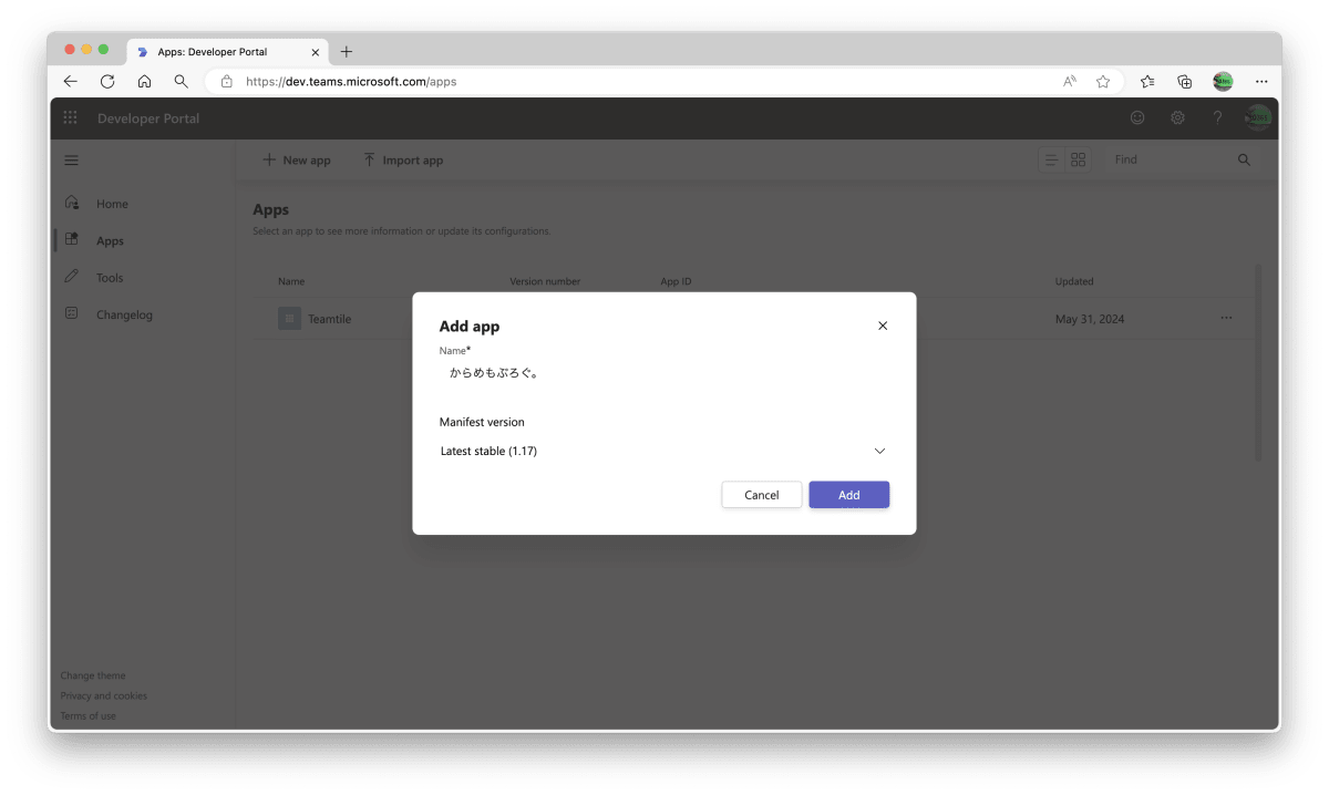 Microsoft Teams の 開発者ポータル(https://dev.teams.microsoft.com) にサインインします。