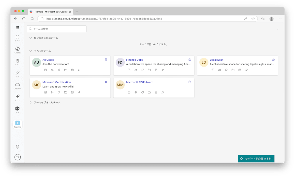 対象のアプリをクリックすると Teams アプリが表示されることを確認できます。