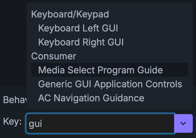しかしながら、プルダウンメニューからキー(の説明文)を選択するという、とても使い難いGUIとなっており、どのキーがリストのどこにあるか分かりにくいです。