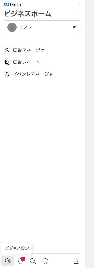 左上のドロップダウンメニューでビジネスアカウントを見つけ、設定(歯車)アイコンをクリックします。