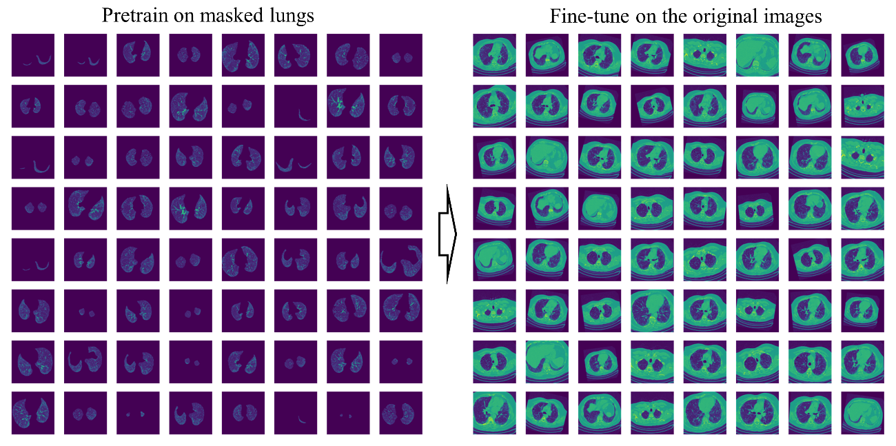 ということで、3DCNNはうまくいかなかったようでした。CT画像を2次元のまま、うまく2DCNNを使って肺機能を予測する特徴量が抽出できてるなぁと思った例は9位で、肺をマスクした画像でまず訓練し、オリジナルの画像でFinetuneするということをしていました。
